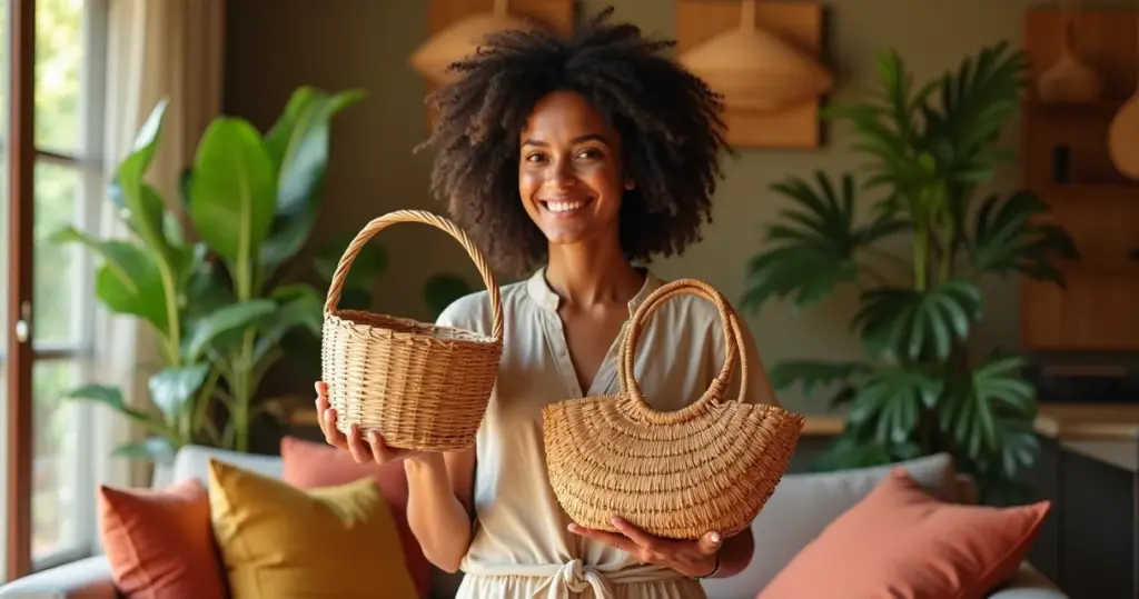 - Teste a resistência na loja: Pressione levemente o fundo do cesto. Se ceder muito, vai entortar com peso. O bambu deve ser firme; o vime, flexível mas não frágil.