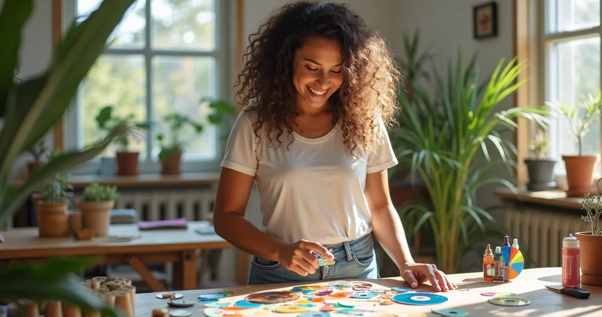 O upcycling de mídias é uma tendência que veio para ficar! Você pode transformar seus DVDs e CDs em arte. Que tal um mosaico para um espelho, um porta-copos estiloso ou até um enfeite de Natal? A técnica de ferver o CD para amolecer o plástico facilita muito o corte e abre um mundo de possibilidades. Para mais ideias criativas, dá uma olhada aqui.
