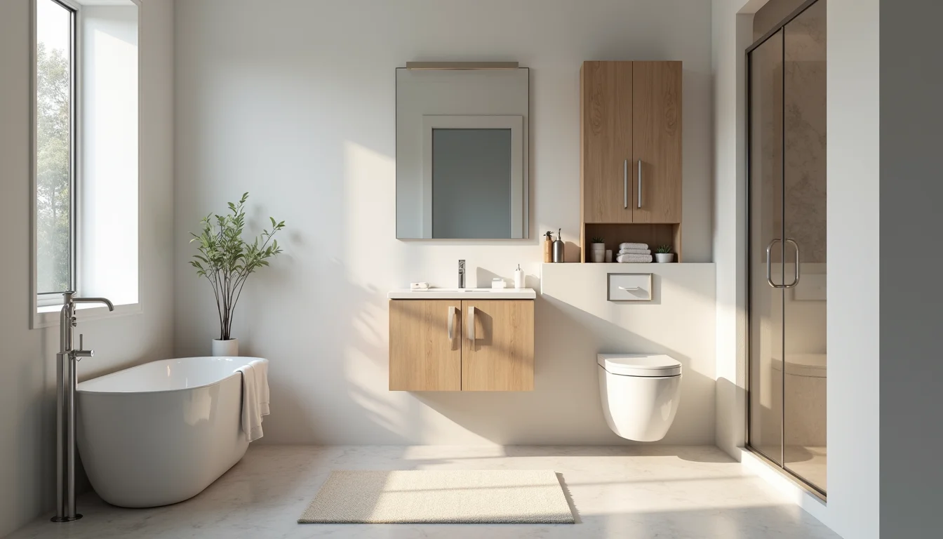“A estratégia principal para decorar um banheiro pequeno e simples é utilizar cores claras e móveis suspensos para criar uma sensação de amplitude e organização, evitando o excesso visual que faz o espaço parecer menor.”