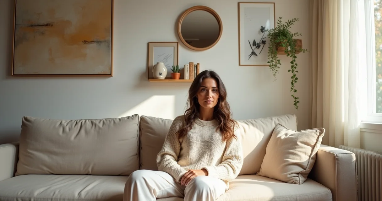 O grande segredo? É a proporção. O elemento escolhido deve harmonizar com o tamanho do seu sofá. Se o sofá é grande, um quadro pequeno vai sumir. Se o sofá é compacto, um painel enorme pode sobrecarregar.